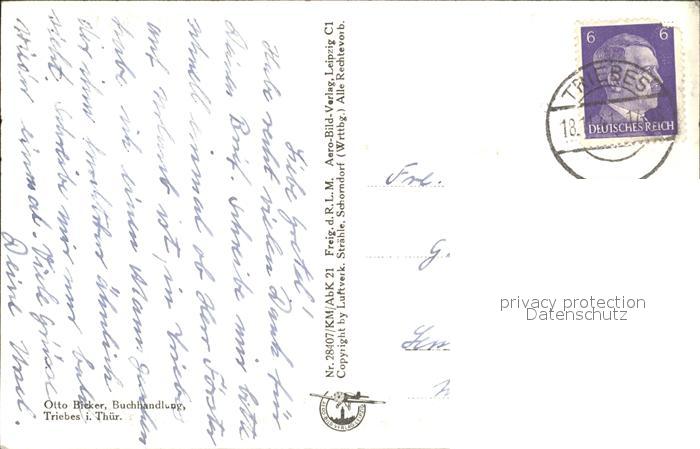 32030170 alte Postkarte Triebes Fliegeraufnahme postalisch gelaufen Erhaltung siehe scans KatCode: 11110016076087