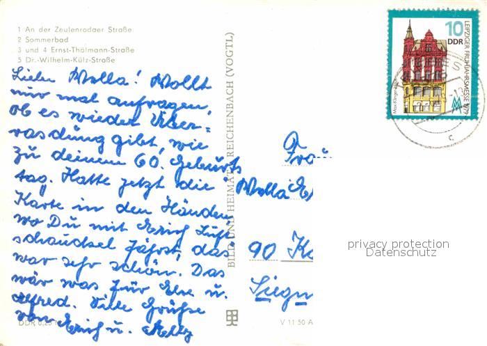 72728656 alte Postkarte Triebes Zeulenroader Strasse Sommerbad Ernst Thaelmann Strasse Dr Wilhelm Kuelz Strasse postalisch gelaufen Erhaltung siehe scans [FriedD77] KatCode: 11110016076087
