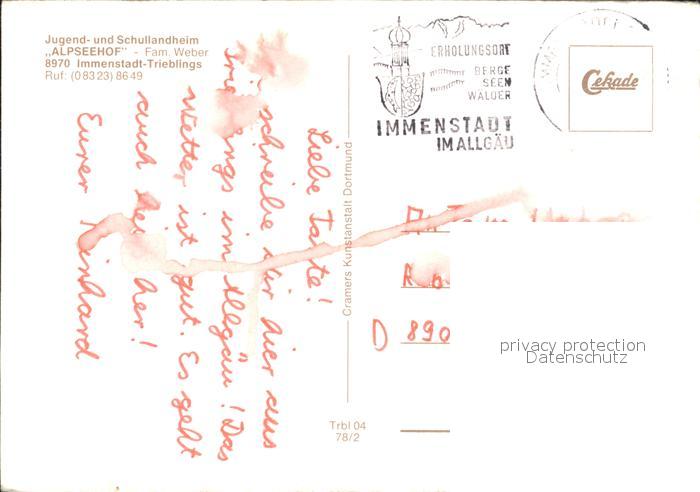 72064857 alte Postkarte Trieblings Jugendheim Schullandheim Alpseehof Alpsee Segelboot postalisch gelaufen Erhaltung siehe scans KatCode: 11110009780124
