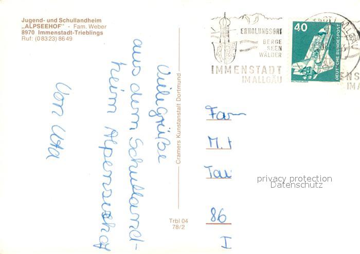 73730804 alte Postkarte Trieblings Kindererholungsheim Alpseehof Landschaftspanorama postalisch gelaufen Erhaltung siehe scans [FriedD77] KatCode: 11110009780124