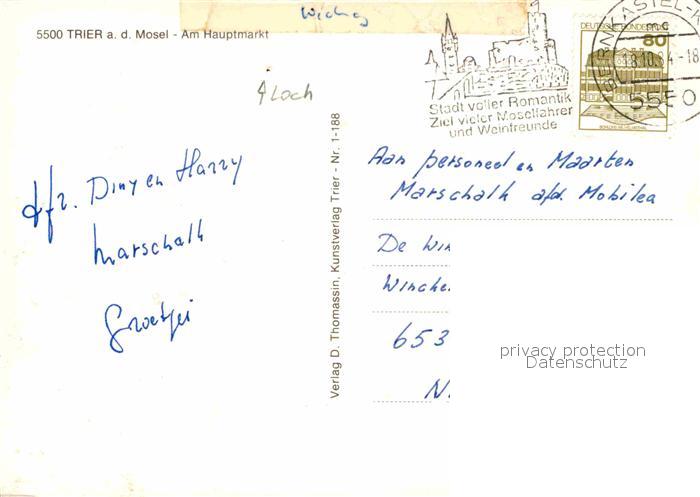 72869665 alte Postkarte Trier Am Hauptmarkt postalisch gelaufen Erhaltung siehe scans [LiesaD40] KatCode: 11110007211000