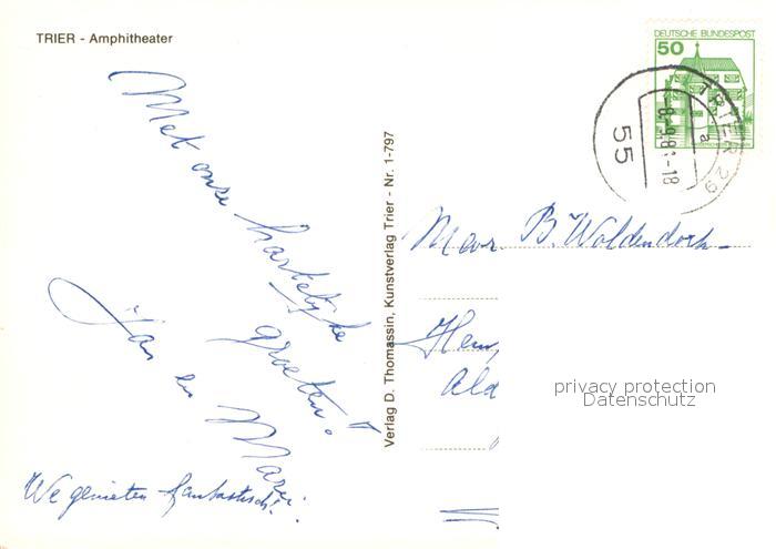 72935739 alte Postkarte Trier Amphitheater Antike Staette postalisch gelaufen Erhaltung siehe scans [FriedD77] KatCode: 11110007211000
