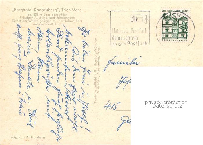 72966436 alte Postkarte Trier Berghotel Kochelsberg postalisch gelaufen Erhaltung siehe scans [NatalD47] KatCode: 11110007211000