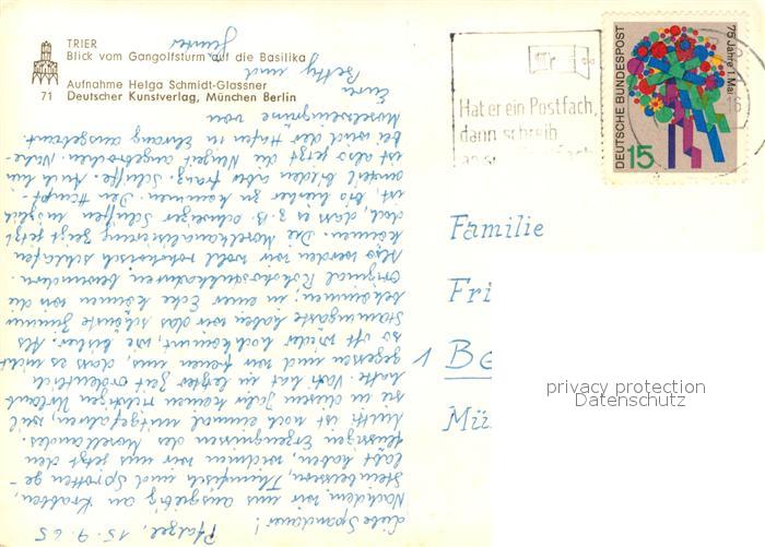 73044953 alte Postkarte Trier Blick vom Gangolfsturm auf die Basilika postalisch gelaufen Erhaltung siehe scans [WerneD78] KatCode: 11110007211000