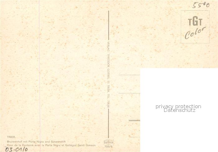 73060009 Trier Brunnenhof mit Porta Nigra und Simeonstift postalisch nicht gelaufen Erhaltung siehe scans [WerneD78] KatCode: 11110007211000