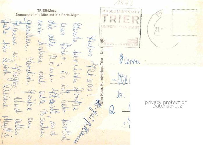 72898877 alte Postkarte Trier Brunnenhof mit Porta Nigra postalisch gelaufen Erhaltung siehe scans [FriedD77] KatCode: 11110007211000