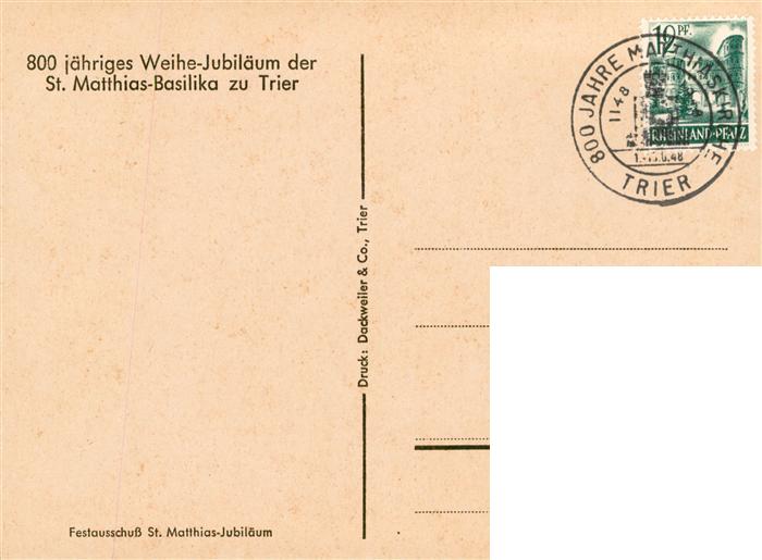 73889221 TRIER CITY 800jaehriges Weihe-Jubilaeum der St. Matthias Basilika Zeichnung Kuenstlerkarte postalisch gelaufen Erhaltung siehe scans [FriedD77] alte Postkarte Frie Katcode 11110007211000