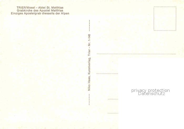 72784994 TRIER CITY Abtei St Matthias Grabkirche des Apostel Matthias postalisch nicht gelaufen Erhaltung siehe scans [WerneD78] KatCode: 11110007211000