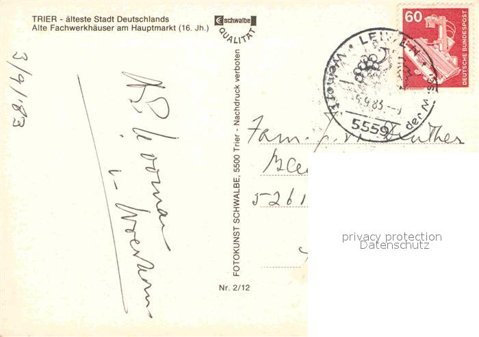 72772739 alte Postkarte TRIER CITY Alte Fachwerkhaeuser am Hauptmarkt postalisch gelaufen Erhaltung siehe scans [WerneD78] KatCode: 11110007211000
