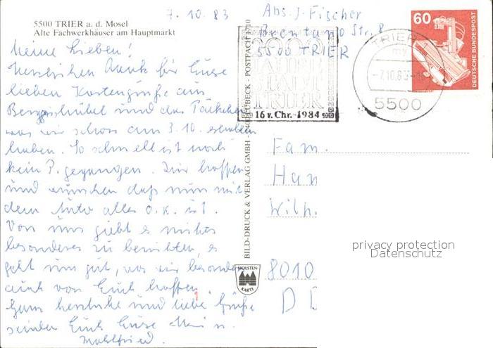 72367802 alte Postkarte TRIER CITY Alte Rachwerkhaeuser Hauptmarkt postalisch gelaufen Erhaltung siehe scans KatCode: 11110007211000