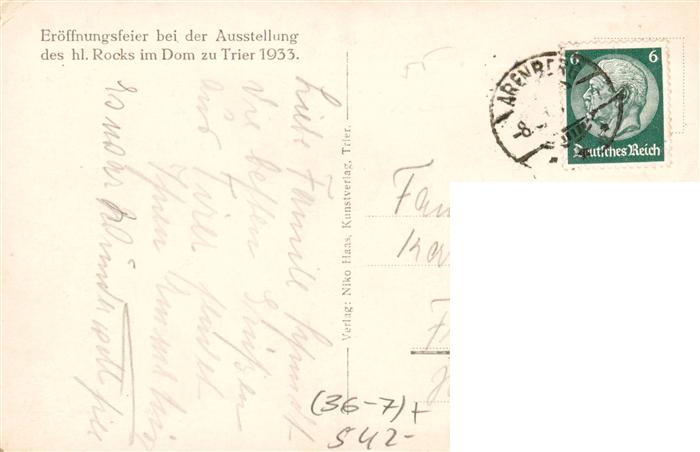 73921758 TRIER CITY Ausstellung des hl Rocks im Dom zu Trier 1933 postalisch gelaufen Erhaltung siehe scans [FriedD77] alte Postkarte Frie Katcode 11110007211000