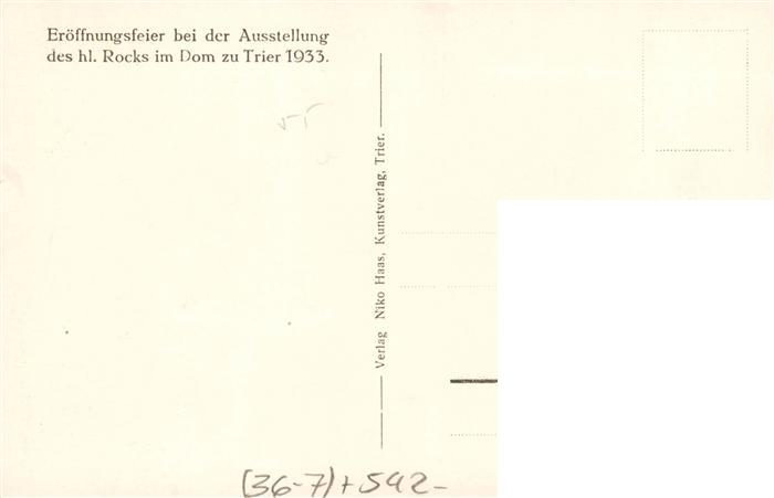 73921754 TRIER CITY Ausstellung des hl Rocks im Dom zu Trier 1933 postalisch nicht gelaufen Erhaltung siehe scans [FriedD77] Frie Katcode 11110007211000
