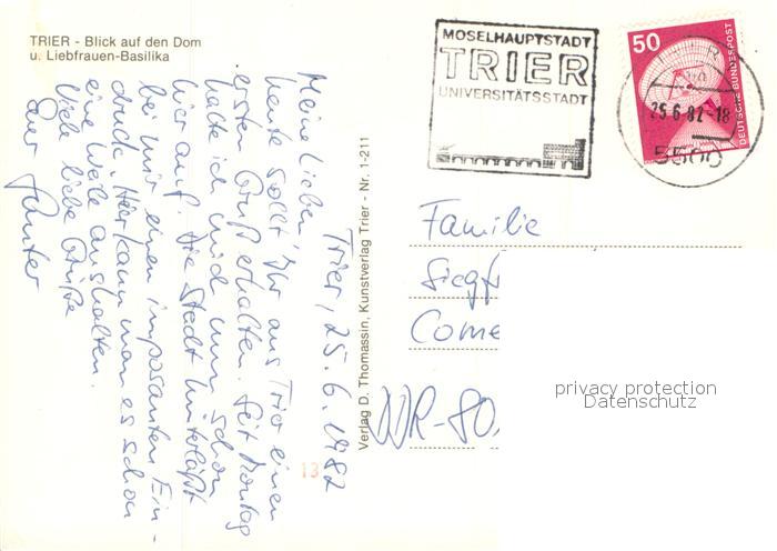 73704538 TRIER CITY Blick auf Dom und Liebfrauen Basilika postalisch gelaufen Fliegeraufnahme Erhaltung siehe scans [FriedD77] Fliegeraufnahme alte Postkarte Frie Katcode 11110007211000