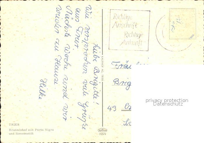72529193 alte Postkarte TRIER CITY Brunnenhof mit Porta Nigra und Simeonstift postalisch gelaufen Erhaltung siehe scans KatCode: 11110007211000