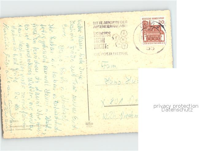 72362159 alte Postkarte TRIER CITY Brunnenhof mit Porta-Nigra und Simeonstift postalisch gelaufen Erhaltung siehe scans KatCode: 11110007211000