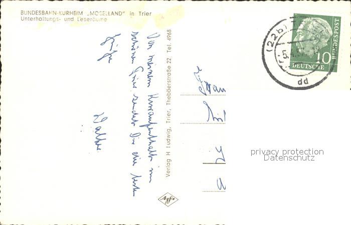 72009662 alte Postkarte TRIER CITY Bundesbahn-Kurheim Moselland Leseraum postalisch gelaufen Erhaltung siehe scans KatCode: 11110007211000