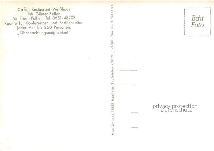 73759816 TRIER CITY Cafe Restaurant Weisshaus Gastraeume Terrasse postalisch nicht gelaufen Erhaltung siehe scans [FriedD77] Frie Katcode 11110007211000