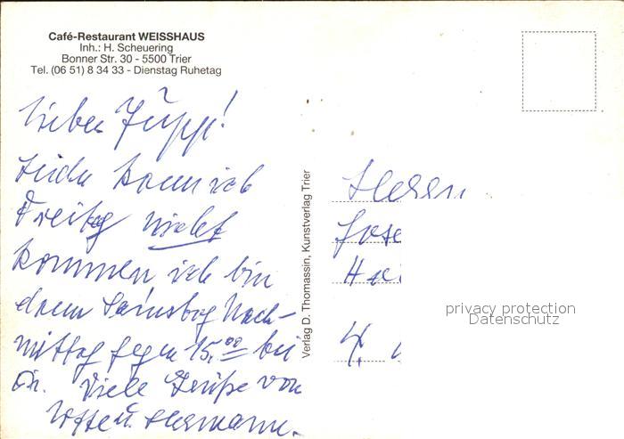 72529305 TRIER CITY Cafe Restaurant Weisshaus Terrasse Moselpartie postalisch nicht gelaufen Erhaltung siehe scans KatCode: 11110007211000