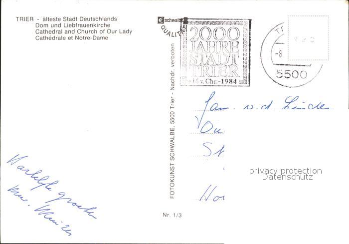 72231108 alte Postkarte TRIER CITY Dom und Liebfrauenkirche aelteste Stadt Deutschlands postalisch gelaufen Erhaltung siehe scans KatCode: 11110007211000