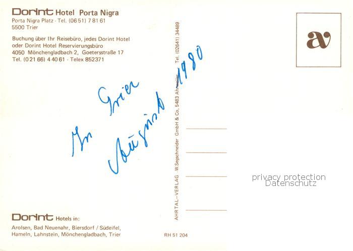 73846161 TRIER CITY Dorint Hotel Porta Nigra Gastraum Zimmer Halle postalisch nicht gelaufen Erhaltung siehe scans [WerneD78] Wern Katcode 11110007211000