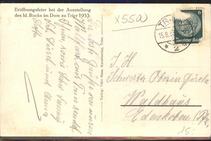 41509637 TRIER CITY Eroeffnungsfeier Ausstellung des hl. Rock im Dom postalisch gelaufen Erhaltung siehe scans Alte Ansichtskarte Postkarte alte Postkarte hz_C Katcode 11110007211000