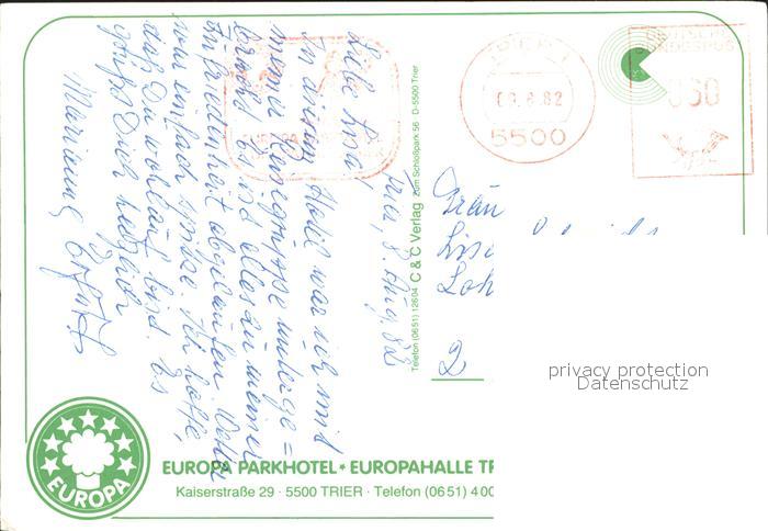 72102308 alte Postkarte TRIER CITY Europa Parkhotel und Europahalle postalisch gelaufen Erhaltung siehe scans KatCode: 11110007211000