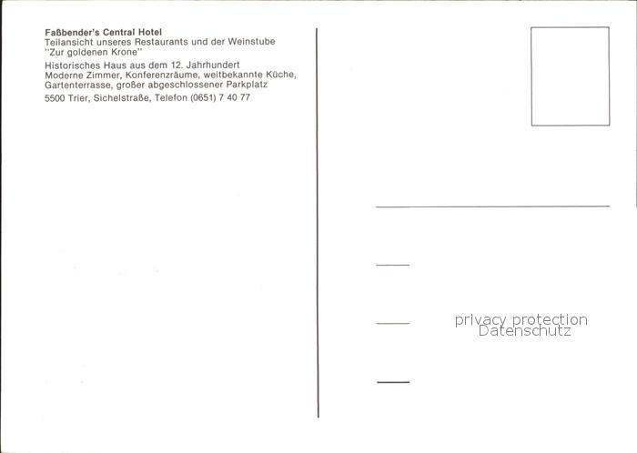 72076800 TRIER CITY Fassbender Central Hotel postalisch nicht gelaufen Erhaltung siehe scans KatCode: 11110007211000