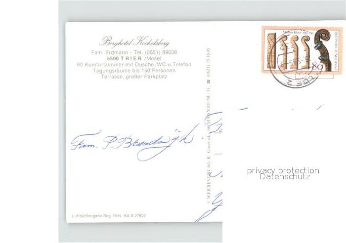 71859774 alte Postkarte TRIER CITY Fliegeraufnahme Berghotel Kockelsberg postalisch gelaufen Erhaltung siehe scans KatCode: 11110007211000