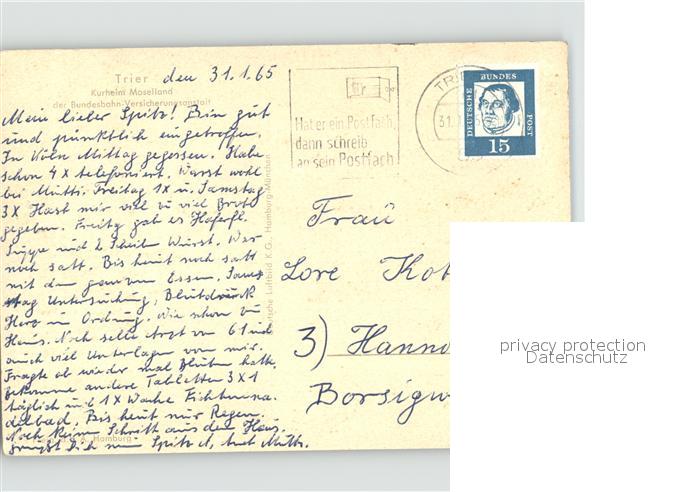 71975367 alte Postkarte TRIER CITY Fliegeraufnahme Kurheim Moselland postalisch gelaufen Erhaltung siehe scans KatCode: 11110007211000