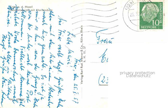 72769333 alte Postkarte TRIER CITY Gesamtansicht mit Mariasaeule postalisch gelaufen Erhaltung siehe scans [AndreD76] KatCode: 11110007211000