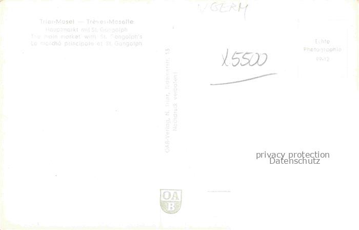 74150451 TRIER CITY Hauptmarkt mit St. Gandolph Kirche postalisch nicht gelaufen Erhaltung siehe scans [FriedD77] KatCode: 11110007211000