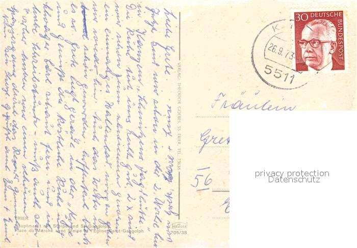 72688003 alte Postkarte TRIER CITY Hauptmarkt mit Steipe und St Gangolph Kirche postalisch gelaufen Erhaltung siehe scans [FriedD77] KatCode: 11110007211000