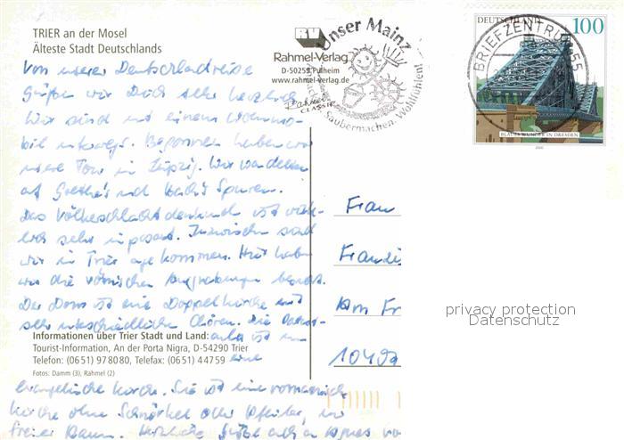 72695216 alte Postkarte TRIER CITY Hauptmarkt Porta Nigra Kaiserthermen Ruinen St Matthias Fachwerkhaeuser postalisch gelaufen Erhaltung siehe scans [FriedD77] KatCode: 11110007211000