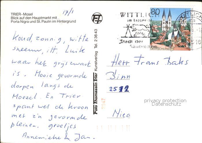 72452571 alte Postkarte TRIER CITY Hauptmarkt Porta Nigra St Paulin postalisch gelaufen Erhaltung siehe scans KatCode: 11110007211000