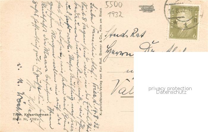 73695565 TRIER CITY Kaiserthermen postalisch gelaufen Erhaltung siehe scans [LiesaD40] alte Postkarte Lies Katcode 11110007211000
