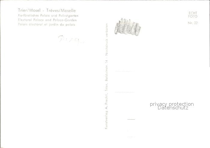 72394512 TRIER CITY Kurfuerstliches Palais Palastgarten postalisch nicht gelaufen Erhaltung siehe scans KatCode: 11110007211000