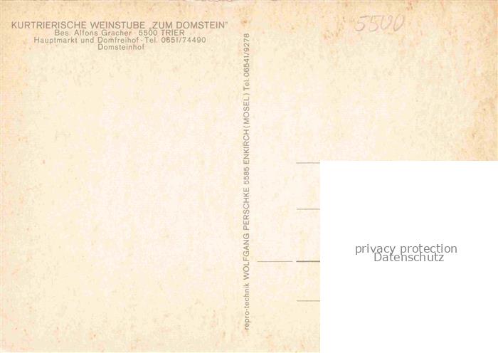 74053247 TRIER CITY Kurtrierische Weinstube zum Domstein Domsteinhof postalisch nicht gelaufen Erhaltung siehe scans [FriedD77] Frie Katcode 11110007211000