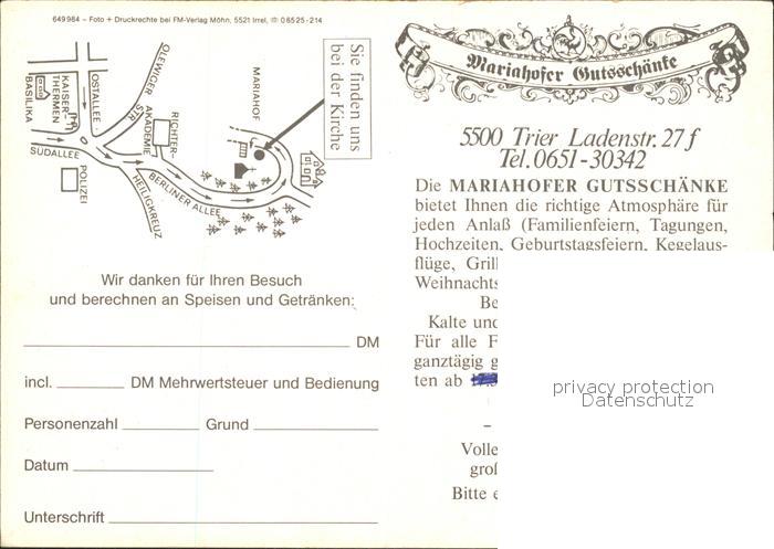 71944793 TRIER CITY Mariahofer Gutsschaenke postalisch nicht gelaufen Werbekarte (keine Postkarte) Erhaltung siehe scans KatCode: 11110007211000