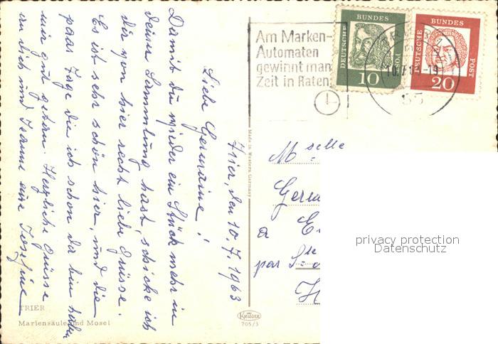 72324773 alte Postkarte TRIER CITY Mariensaeule Mosel postalisch gelaufen Erhaltung siehe scans KatCode: 11110007211000
