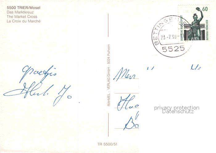 72855929 alte Postkarte TRIER CITY Marktkreuz Altstadt postalisch gelaufen Erhaltung siehe scans [FriedD77] KatCode: 11110007211000