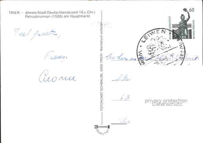 72310459 alte Postkarte TRIER CITY Petrusbrunnen am Hauptmarkt postalisch gelaufen Erhaltung siehe scans KatCode: 11110007211000