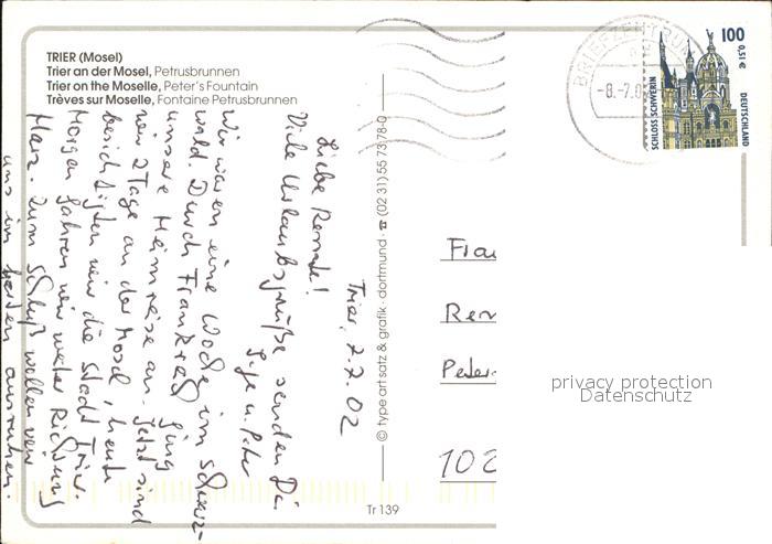 72574047 alte Postkarte TRIER CITY Petrusbrunnen postalisch gelaufen Erhaltung siehe scans [KathaD79] KatCode: 11110007211000