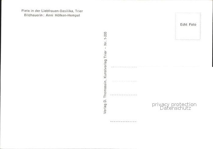 72403632 TRIER CITY Pieta Liebfrauen Basilika Bildhauerin Anni Hoefken Hempel postalisch nicht gelaufen Erhaltung siehe scans KatCode: 11110007211000