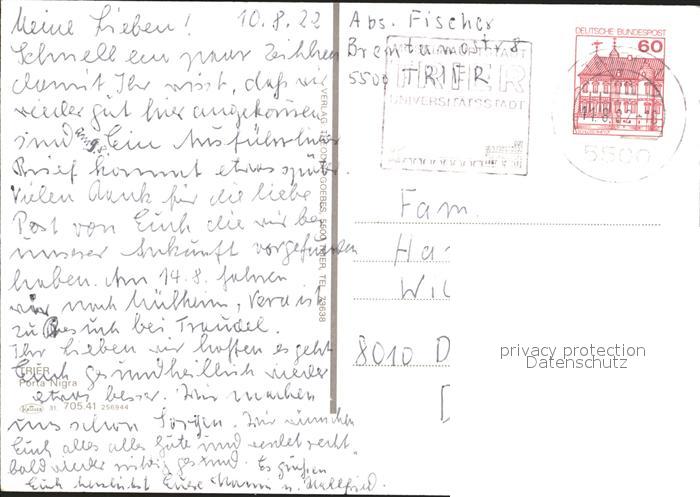72367805 alte Postkarte TRIER CITY Porta Nigra postalisch gelaufen Erhaltung siehe scans KatCode: 11110007211000