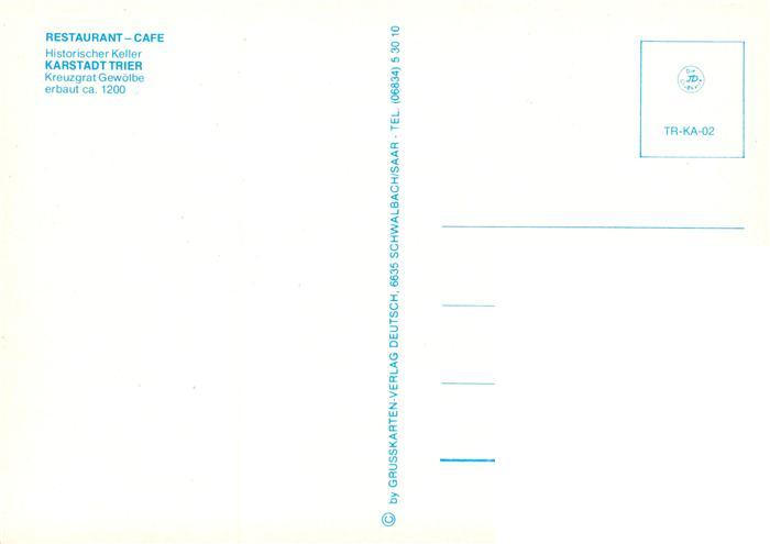 73883957 TRIER CITY Restaurant Cafe Karstadt Trier Kreuzgrat Gewoelbe postalisch nicht gelaufen Erhaltung siehe scans [WerneD78] Wern Katcode 11110007211000