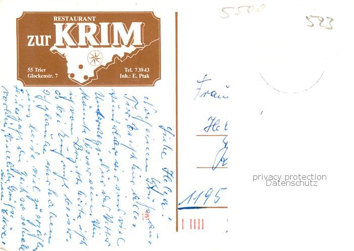 73859470 TRIER CITY Restaurant zur Krim postalisch gelaufen Erhaltung siehe scans [FriedD77] alte Postkarte Frie Katcode 11110007211000