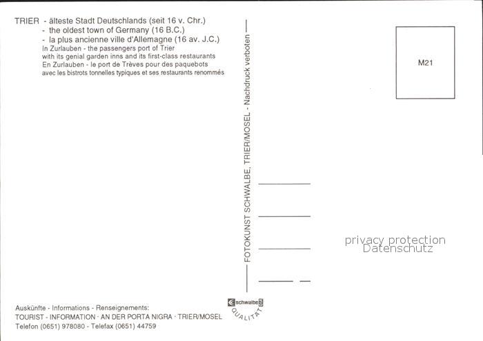 72368303 TRIER CITY Schiffanlegestelle France Helvetia Laubenlokale MS postalisch nicht gelaufen Erhaltung siehe scans KatCode: 11110007211000