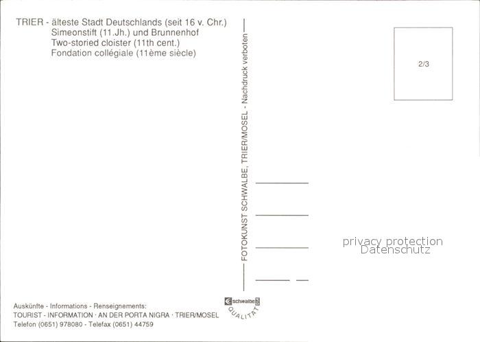 71996511 TRIER CITY Simeonstift Brunnenhof aelteste Stadt Deutschlands postalisch nicht gelaufen KatCode: 11110007211000