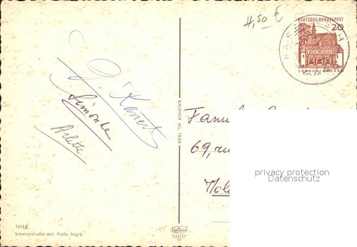 72231145 alte Postkarte TRIER CITY Simeonstrasse mit Porta Nigra postalisch gelaufen Erhaltung siehe scans KatCode: 11110007211000