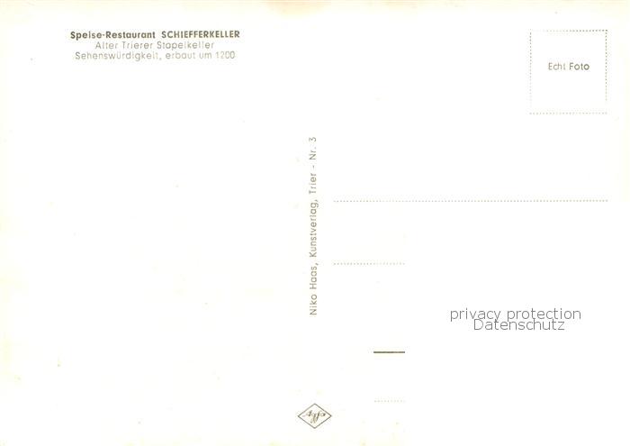 73759819 TRIER CITY Speise Restaurant Schiefferkeller Alter Stapelkeller postalisch nicht gelaufen Erhaltung siehe scans [FriedD77] Frie Katcode 11110007211000